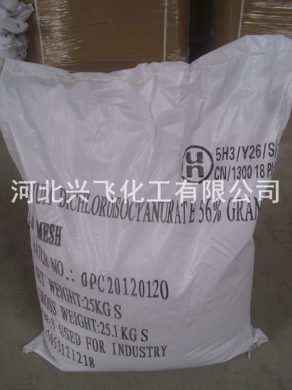 二水二氯異氰尿酸鈉用作消毒劑,可用于飲用水消毒,預(yù)防性消毒及各種場所的環(huán)境水表。用作消毒劑,可用于飲用水消毒,預(yù)防性消毒及各種場所的環(huán)境水表;可用于養(yǎng)蠶消毒、家畜、家禽、魚類飼養(yǎng)消毒;還可用于羊毛防縮整理、紡織工業(yè)漂白、工業(yè)循環(huán)水除藻、橡膠氯化劑。本產(chǎn)品高效、性能穩(wěn)定,對人體無不良影響,在國內(nèi)深受用戶信賴,在國際市場上也很受歡迎。